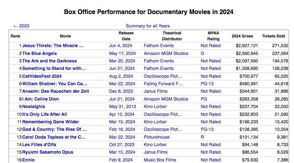JESUS THIRSTS at 1st place BOX OFFICE 2024 Documentary section